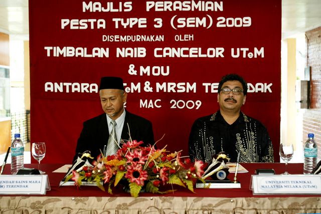 MAJLIS MENANDATANGANI MoU ANTARA UTeM DENGAN MRSM TERENDAK DAN PESTA TYPE III SCHOOLWIDE ENRICHMENT MODEL (SEM) (Jurufoto - Nur