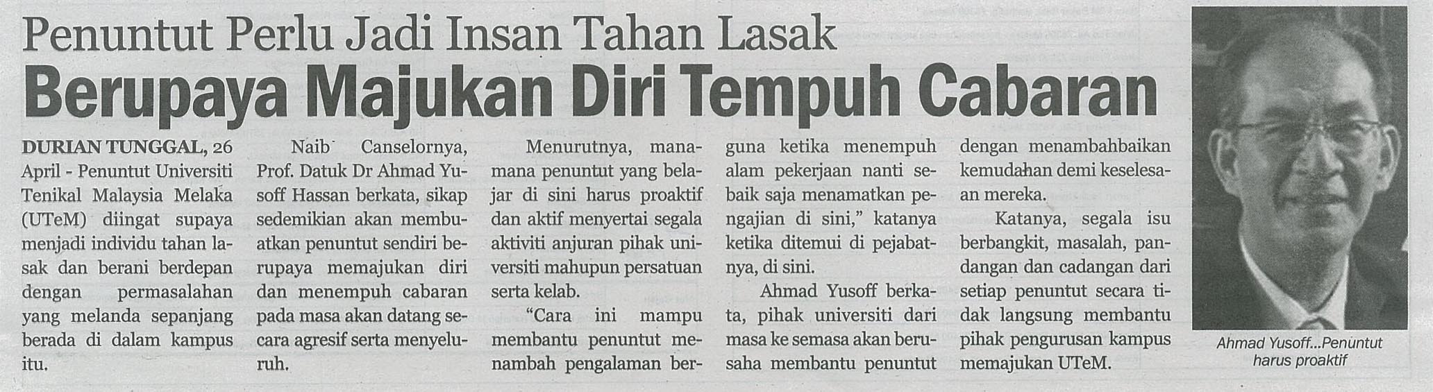 Penuntut perlu jadi insan tahan lasak - Berupaya majukan diri tempuh cabaran