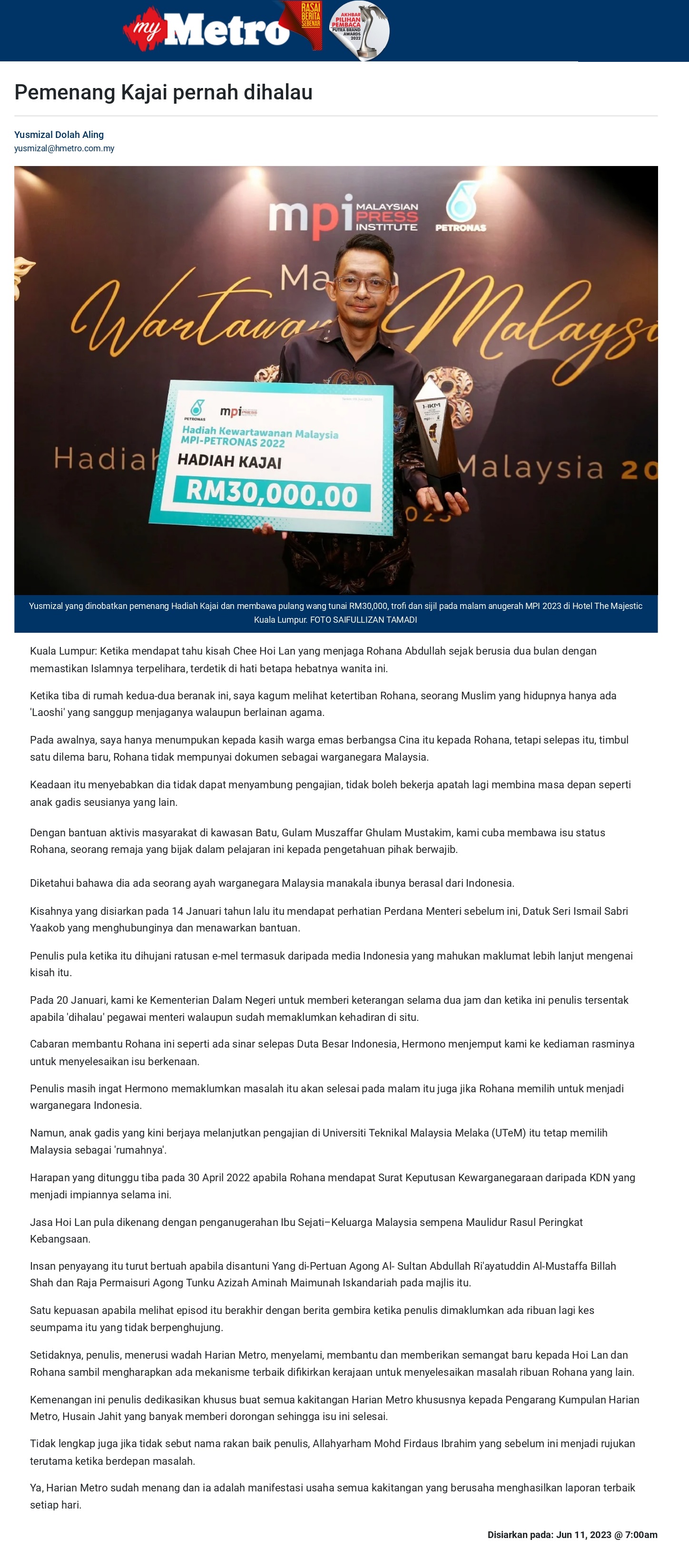 Pemenang Kajai pernah dihalau