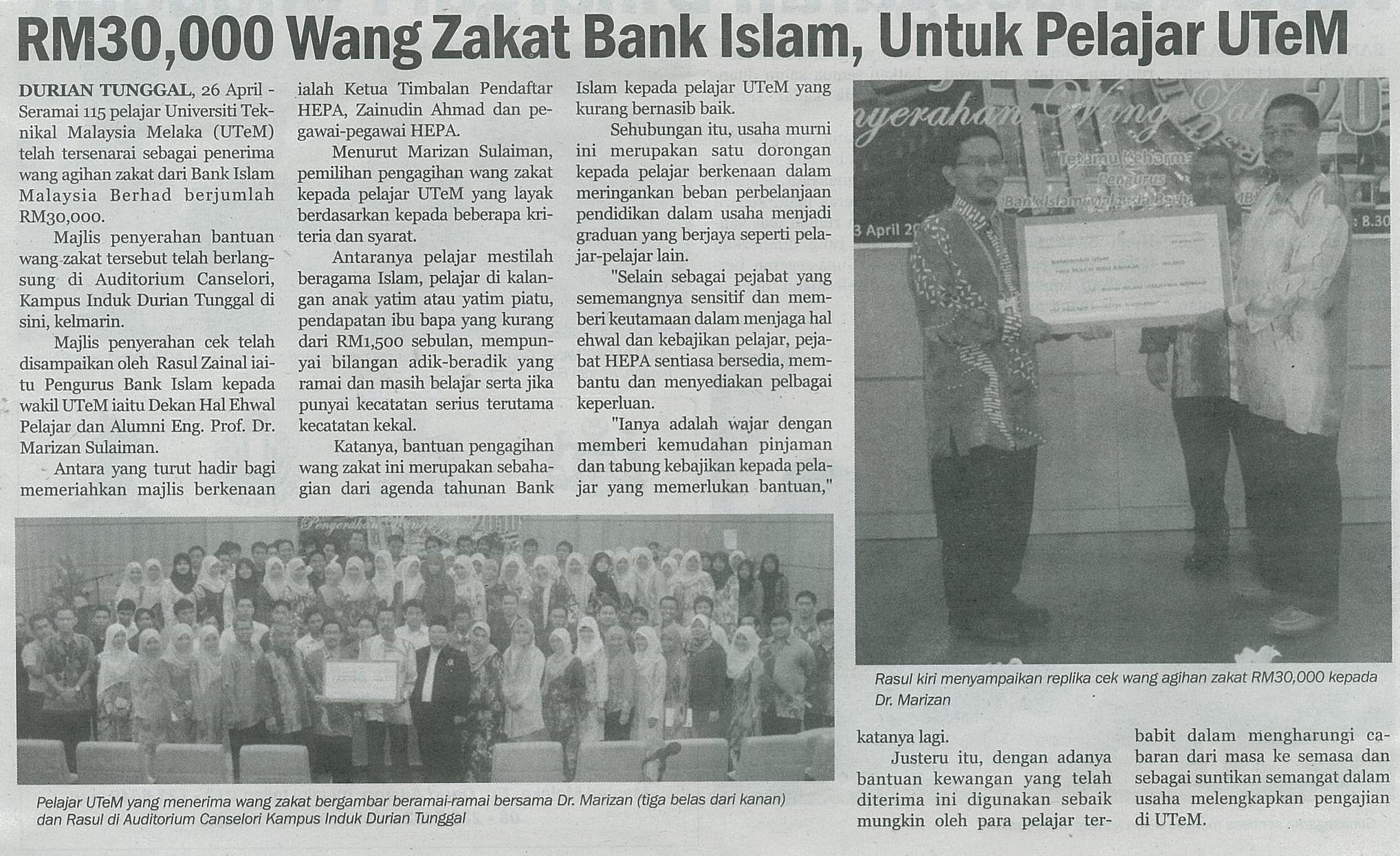 RM 30,000 wang zakat Bank Islam untuk pelajar UTeM
