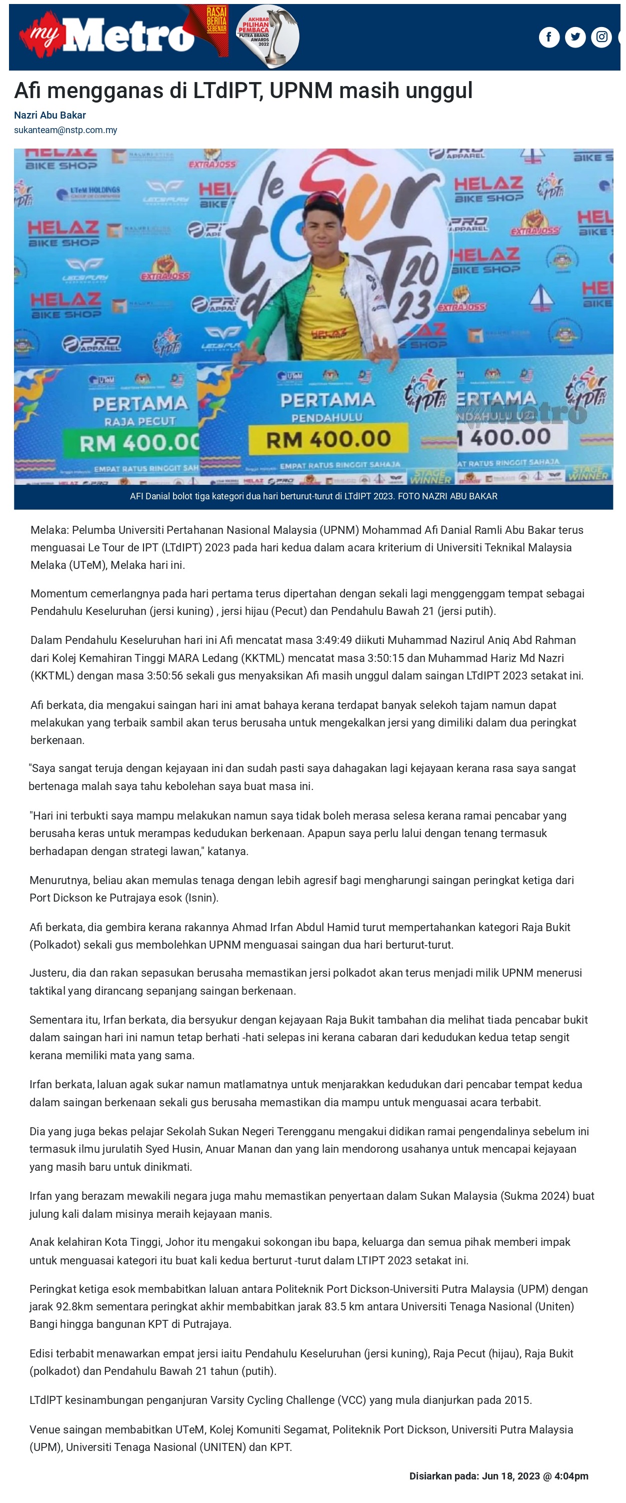 Afi mengganas di LTdIPT, UPNM masih unggul
