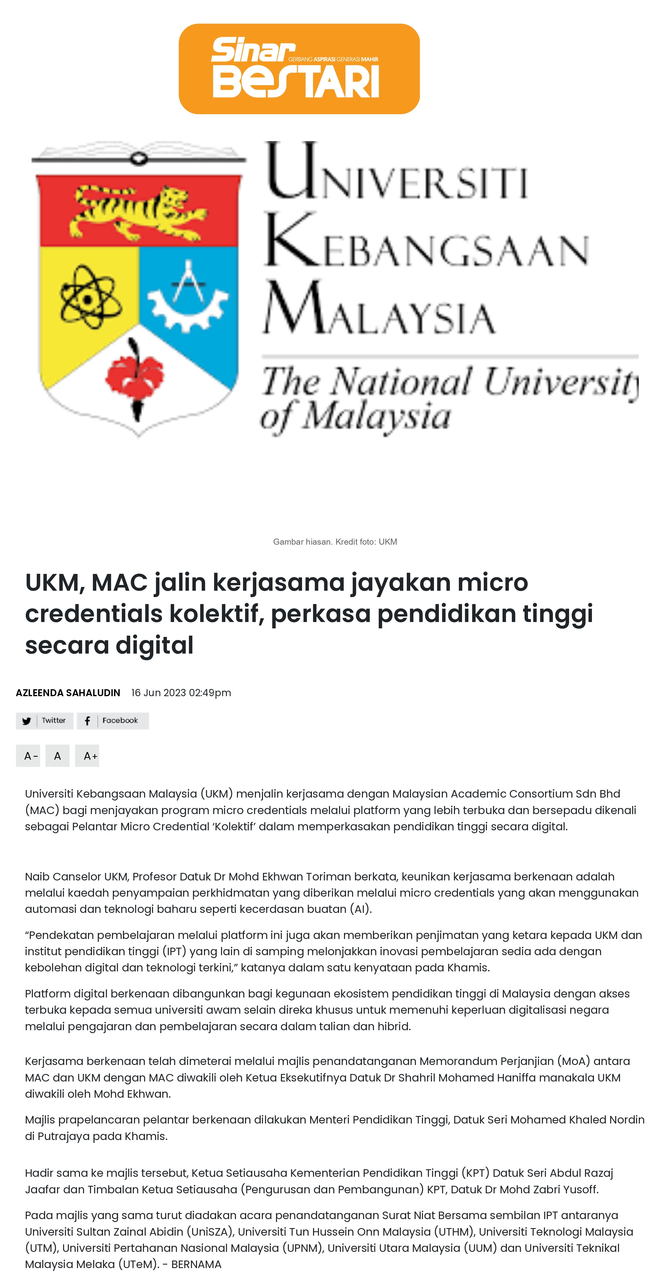 UKM, MAC jalin kerjasama jayakan micro credentials kolektif, perkasa pendidikan tinggi secara digital