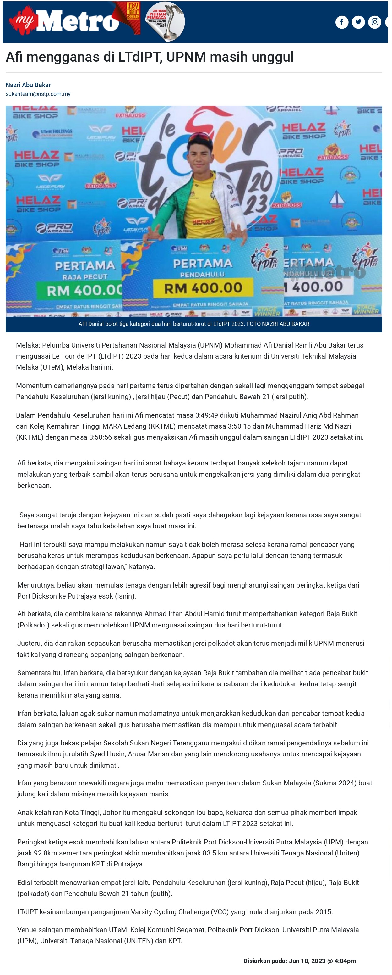 Afi mengganas di LTdIPT, UPNM masih unggul