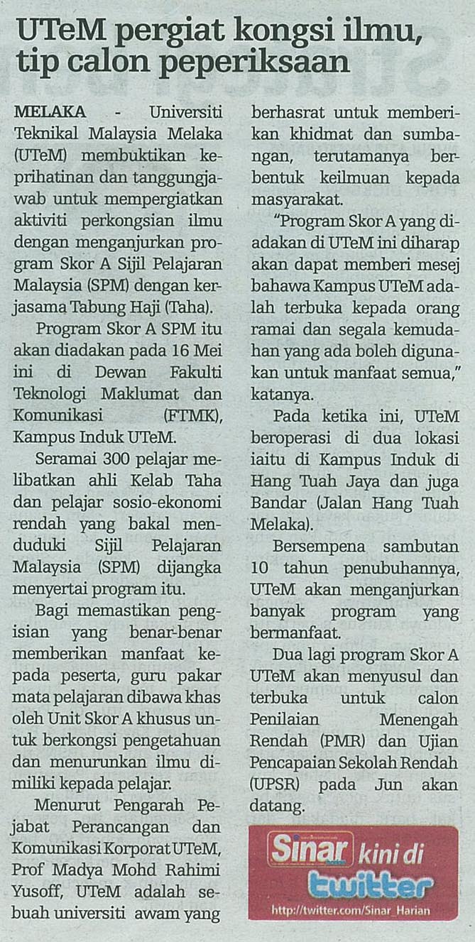UTeM pergiat kongsi ilmu, tip calon peperiksaan