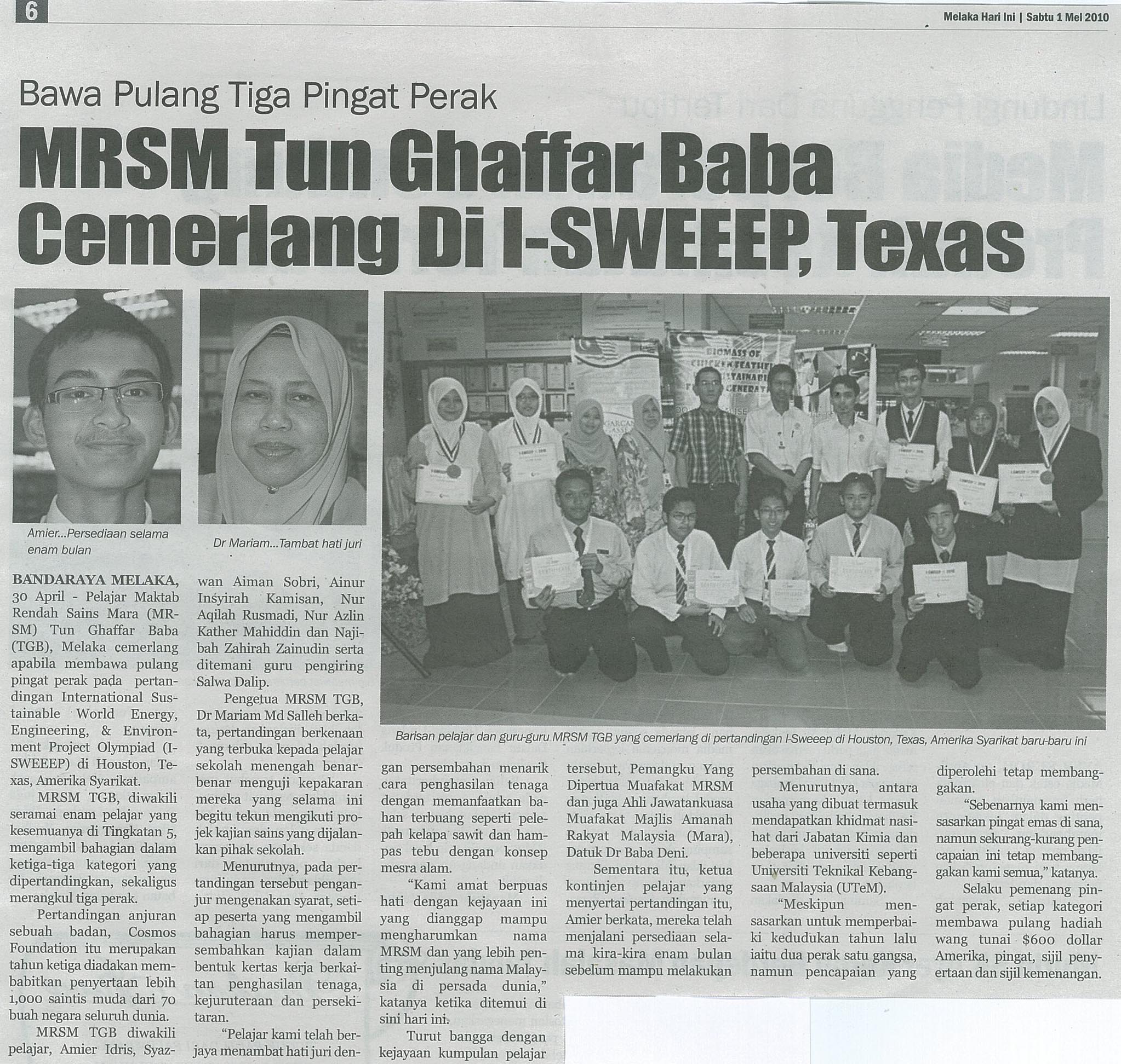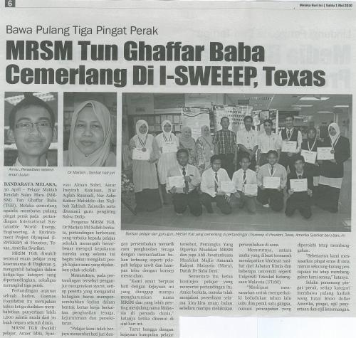 MRSM Tun Ghaffar Baba cemerlang di I-SWEEEP, Texas