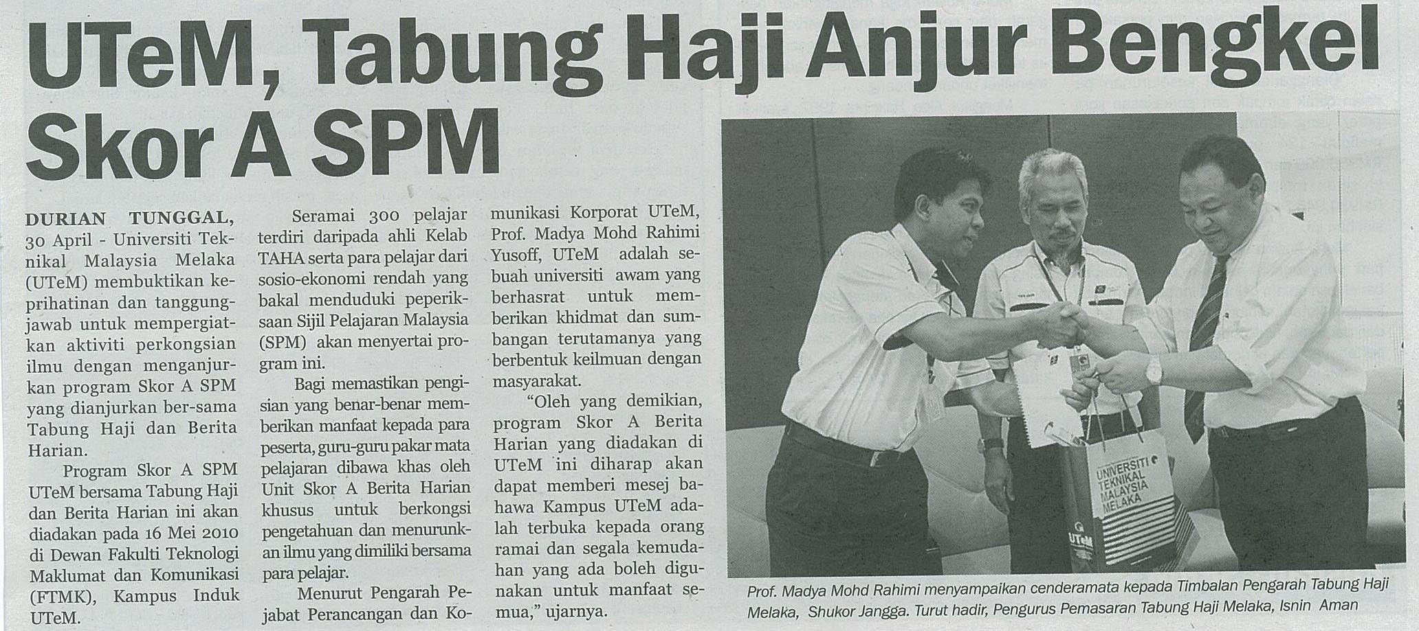 UTeM, Tabung Haji anjur bengkel skor A SPM
