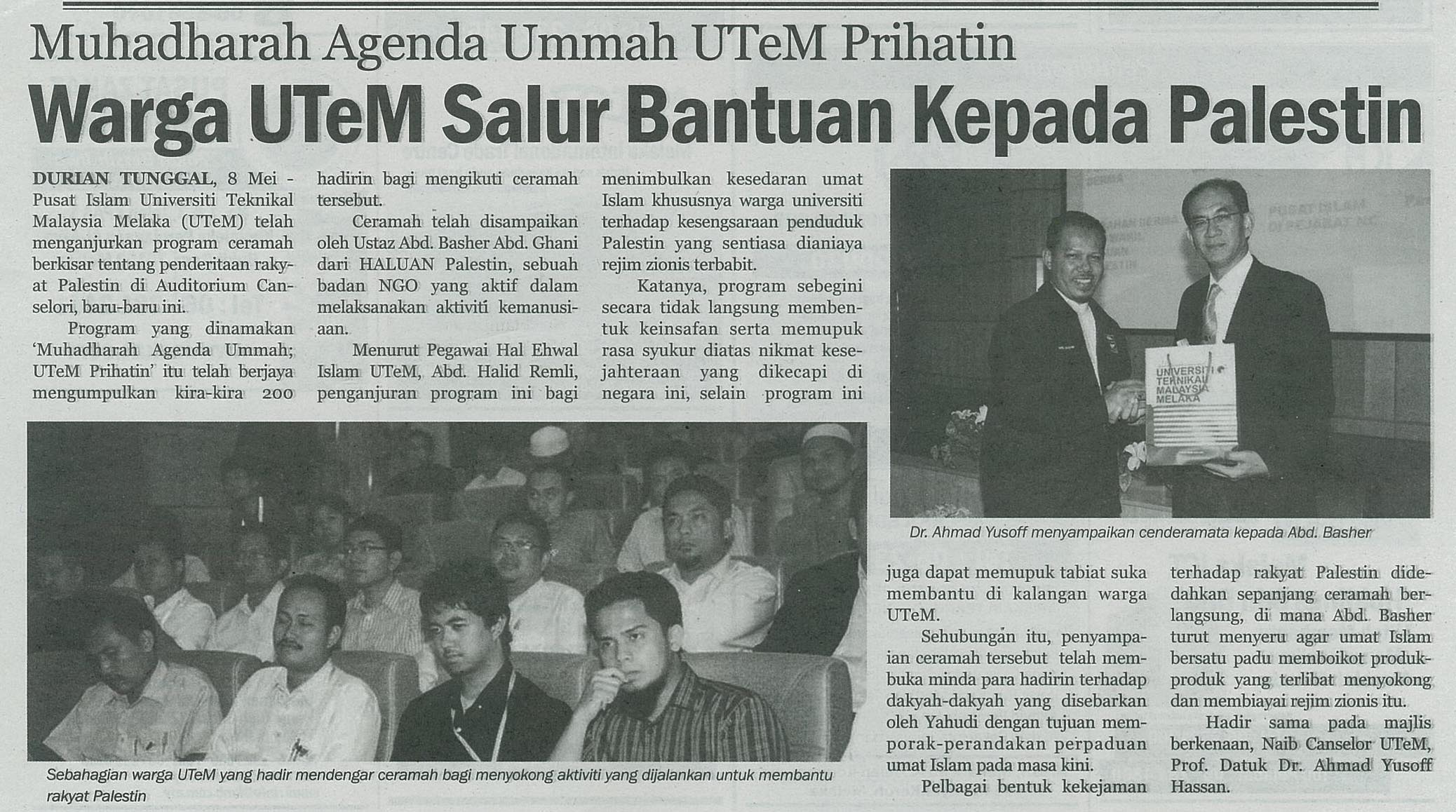 Warga UTeM salur bantuan kepada Palestin