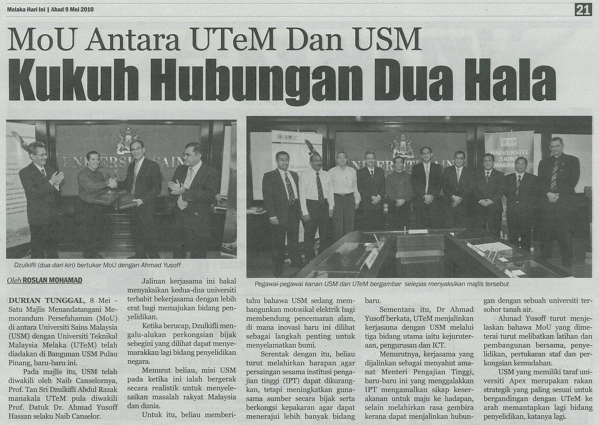 MoU antara UTeM dan USM kukuh hubungan dua hala