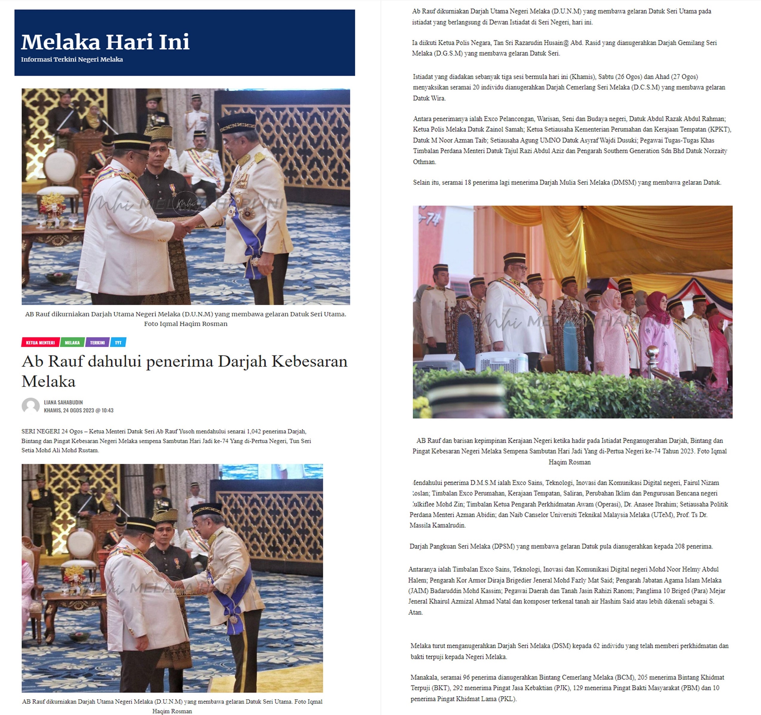 Ab Rauf dahului penerima Darjah Kebesaran Melaka