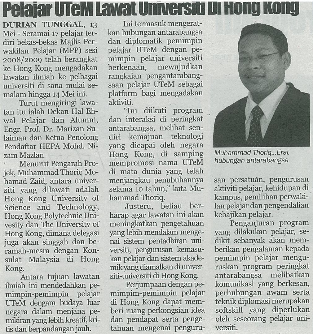 pelajar UTeM lawat universiti di Hong Kong