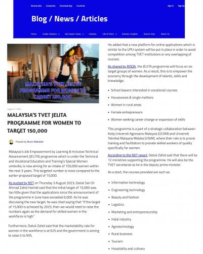 . MALAYSIA’S TVET JELITA PROGRAMME FOR WOMEN TO TARGET 150,000