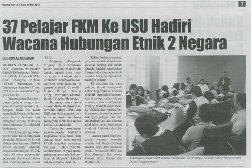 37 pelajar FKM ke USU hadiri wacana hubungan etnik 2 negara