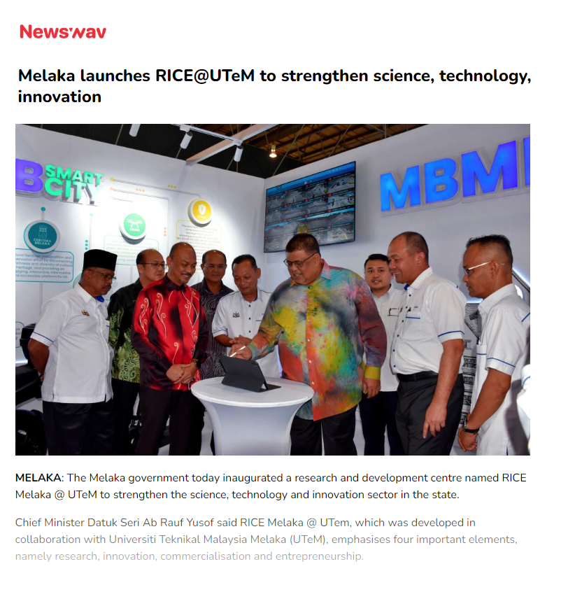 Melaka launches RICE@UTeM to strengthen science, technology, innovation