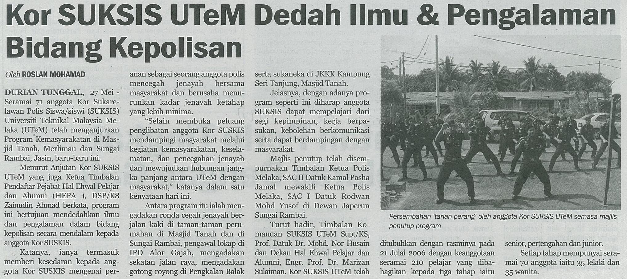 Kor SUKSIS UTeM dedah ilmu dan pengalaman bidang kepolisan