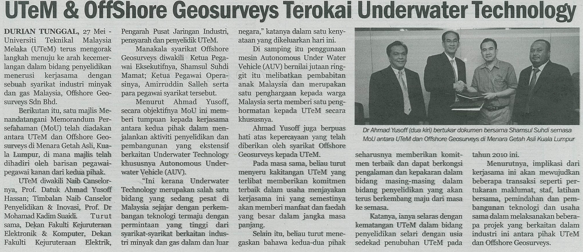 UTeM & offshore Geosurveys terokai Underwater Technology