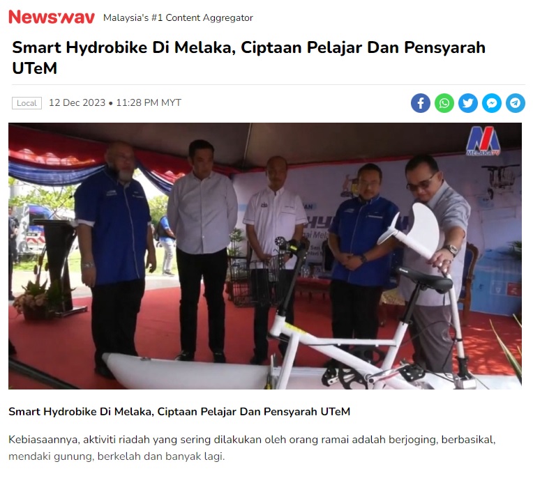 Smart Hydrobike Di Melaka, Ciptaan Pelajar Dan Pensyarah UTeM