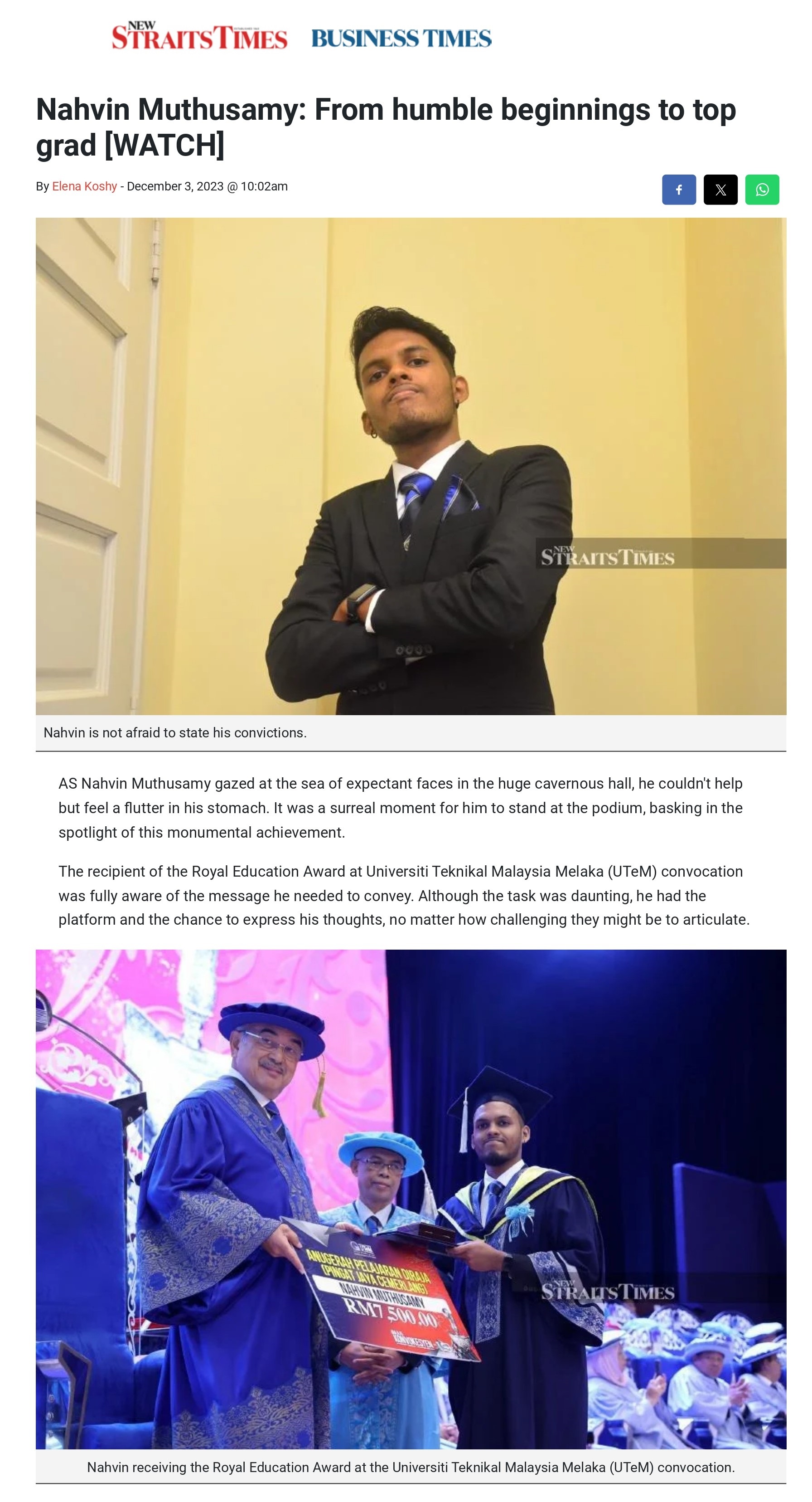Nahvin Muthusamy: From humble beginnings to top grad [WATCH]