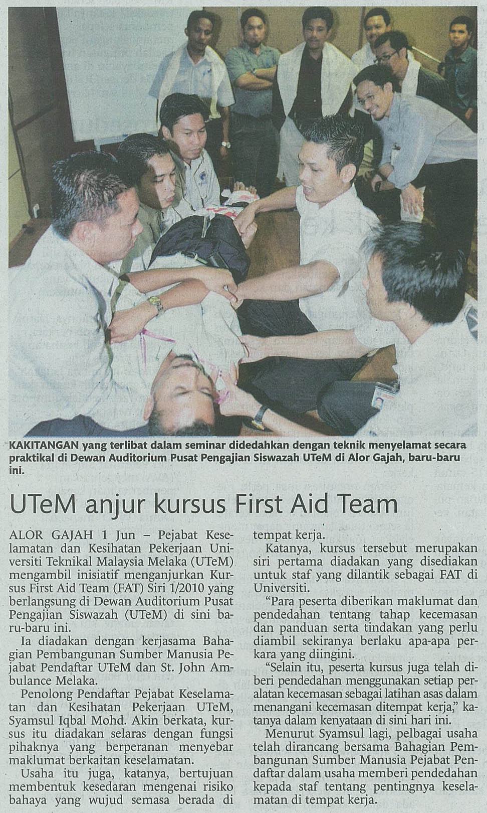 UTeM anjur kursus First Aid Team