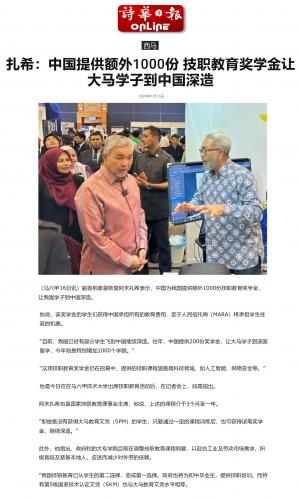扎希:中国提供额外1000份 技职教育奖学金让大马学子到中国深造