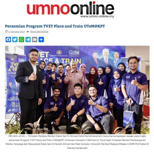 Perasmian Program TVET Place and Train UTeM@KPT