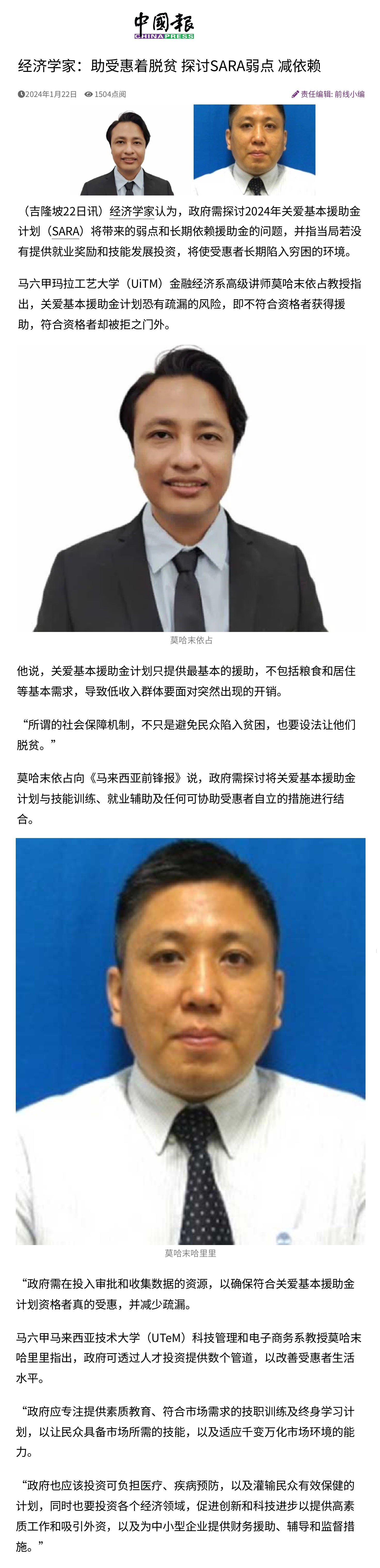 经济学家:助受惠着脱贫 探讨SARA弱点 减依赖