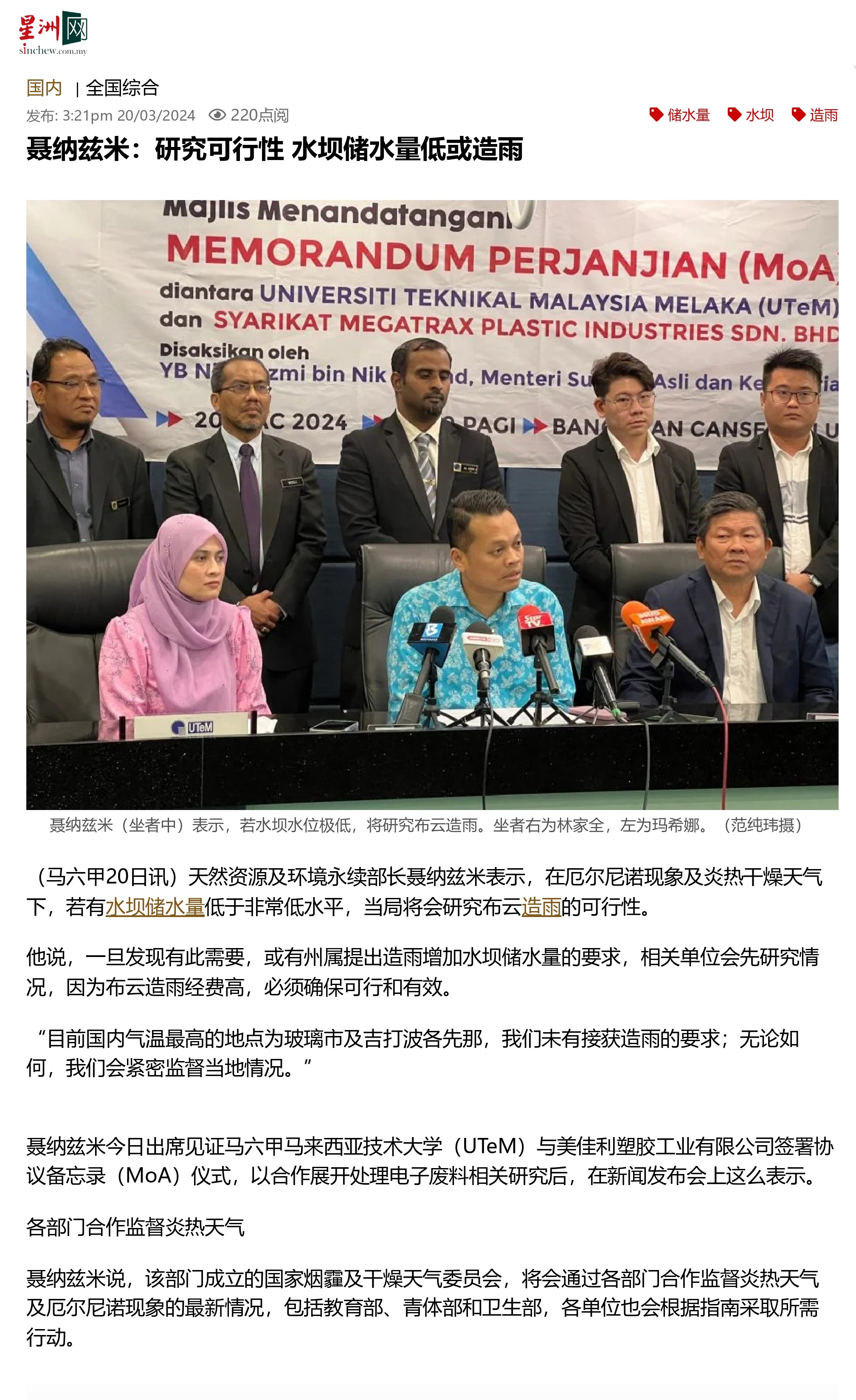 聂纳兹米:研究可行性 水坝储水量低或造雨