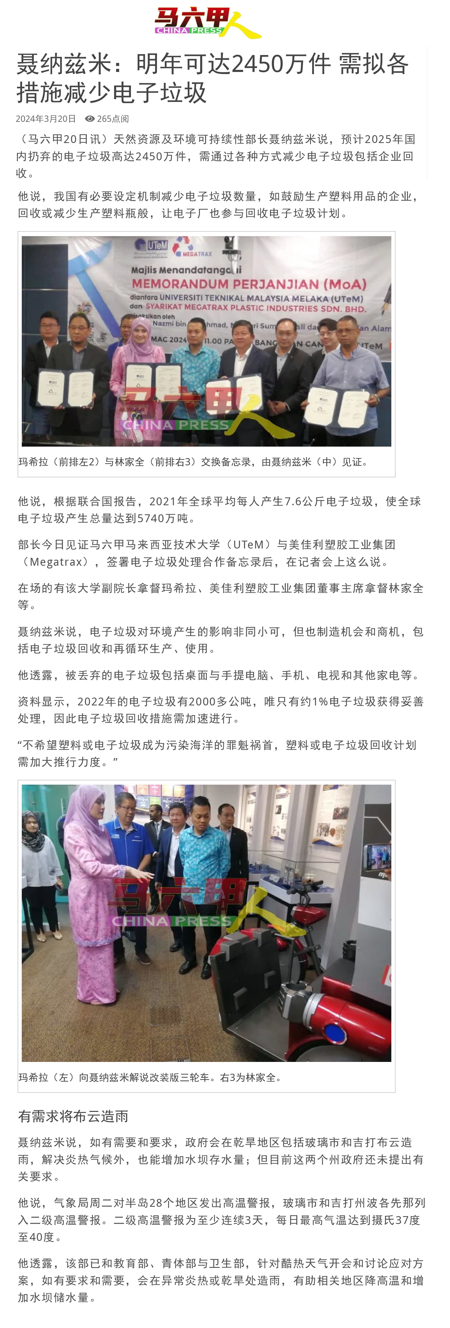 聂纳兹米:明年可达2450万件 需拟各措施减少电子垃圾