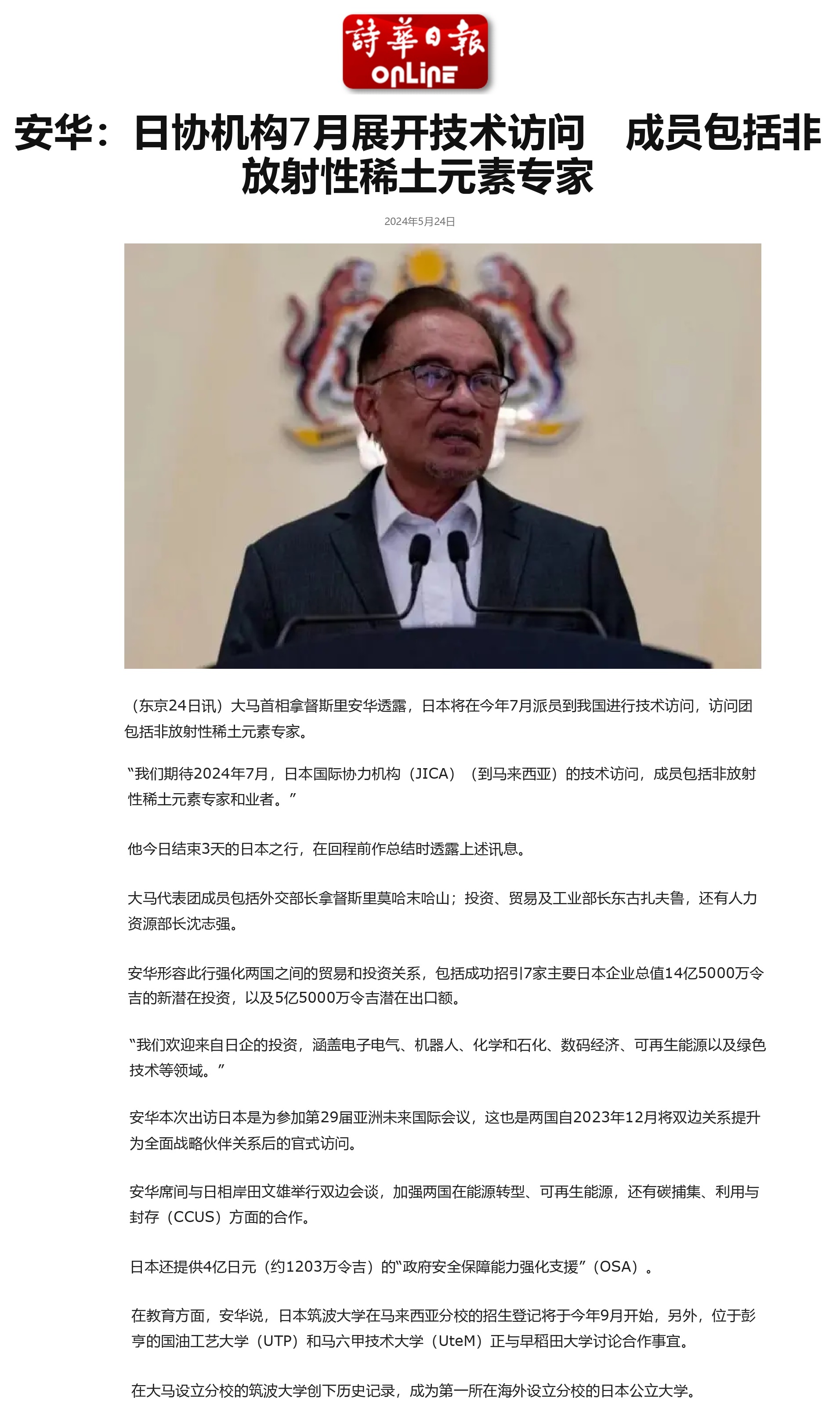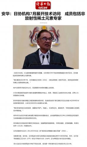 安华:日协机构7月展开技术访问 成员包括非放射性稀土元素专家