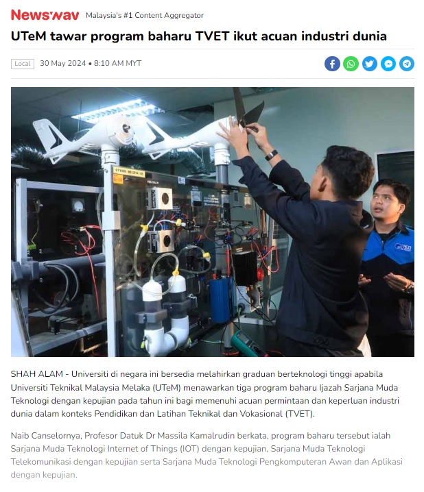 UTeM tawar program baharu TVET ikut acuan industri dunia