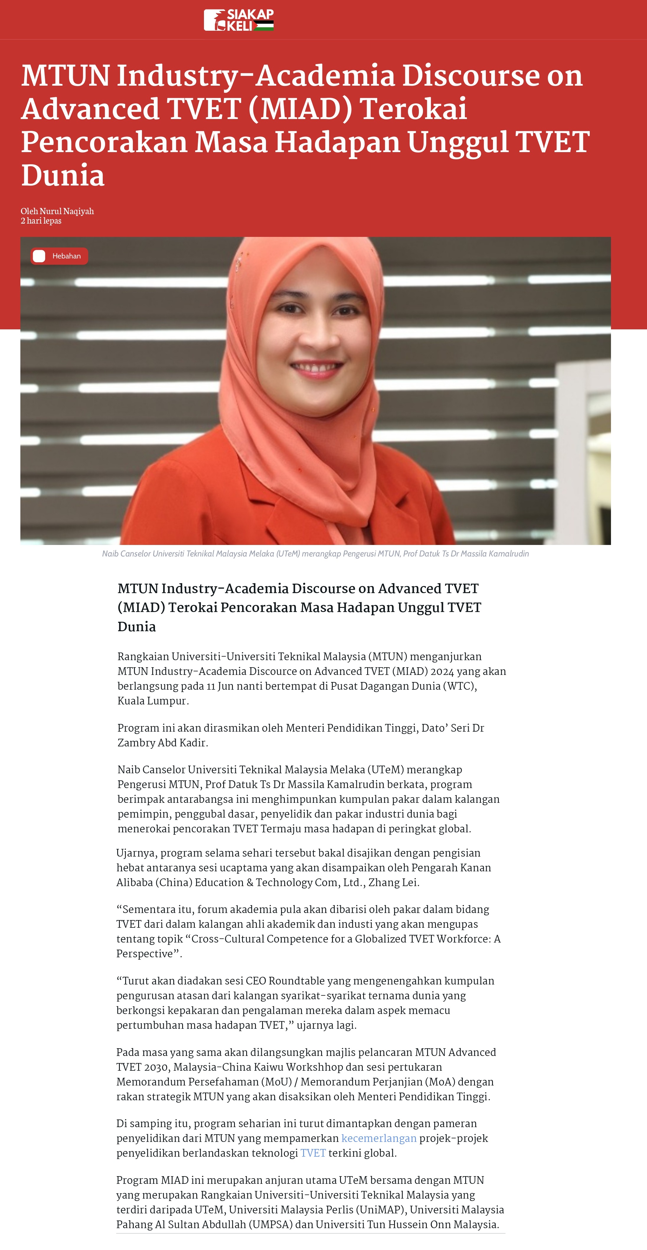 MTUN Industry-Academia Discourse on Advanced TVET (MIAD) Terokai Pencorakan Masa Hadapan Unggul TVET Dunia