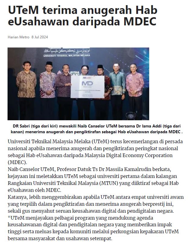 UTeM terima anugerah Hab eUsahawan daripada MDEC