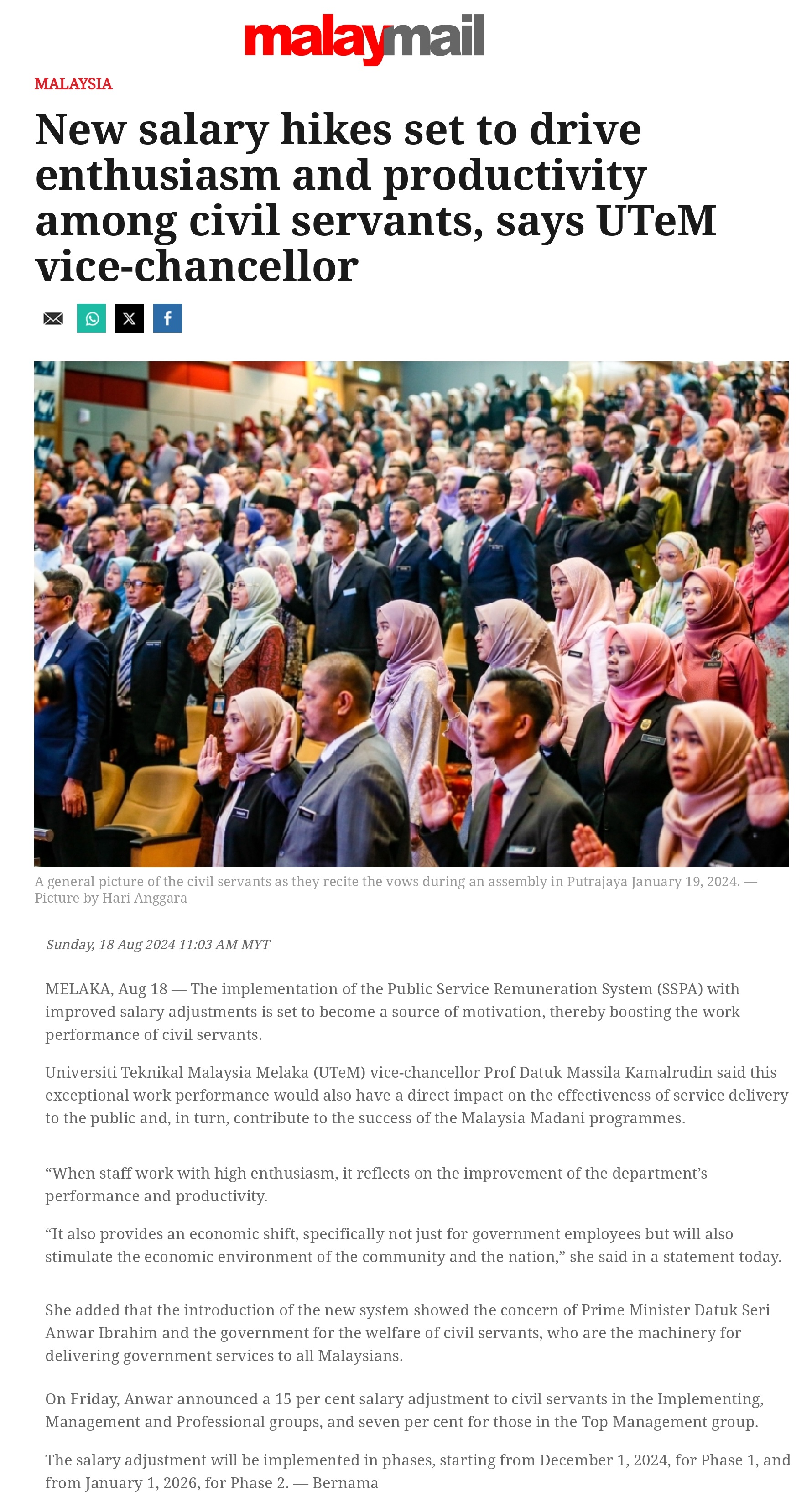 New salary hikes set to drive enthusiasm and productivity among civil servants, says UTeM vice-chancellor