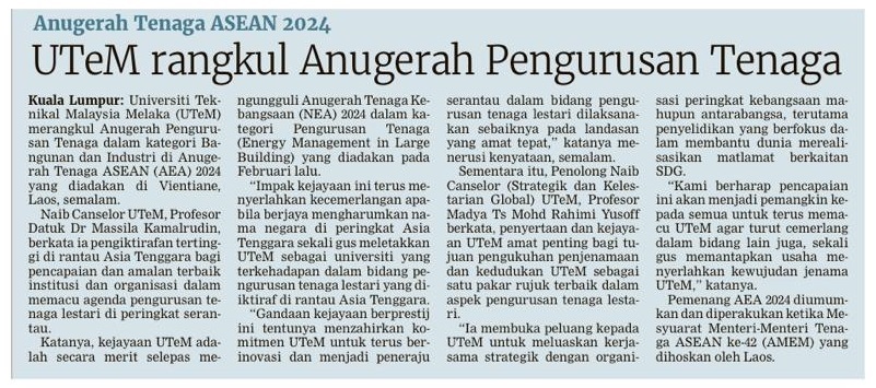 UTeM rangkul Anugerah Pengurusan Tenaga
