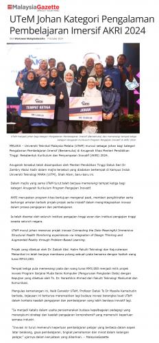 UTeM Johan Kategori Pengalaman Pembelajaran Imersif AKRI 2024
