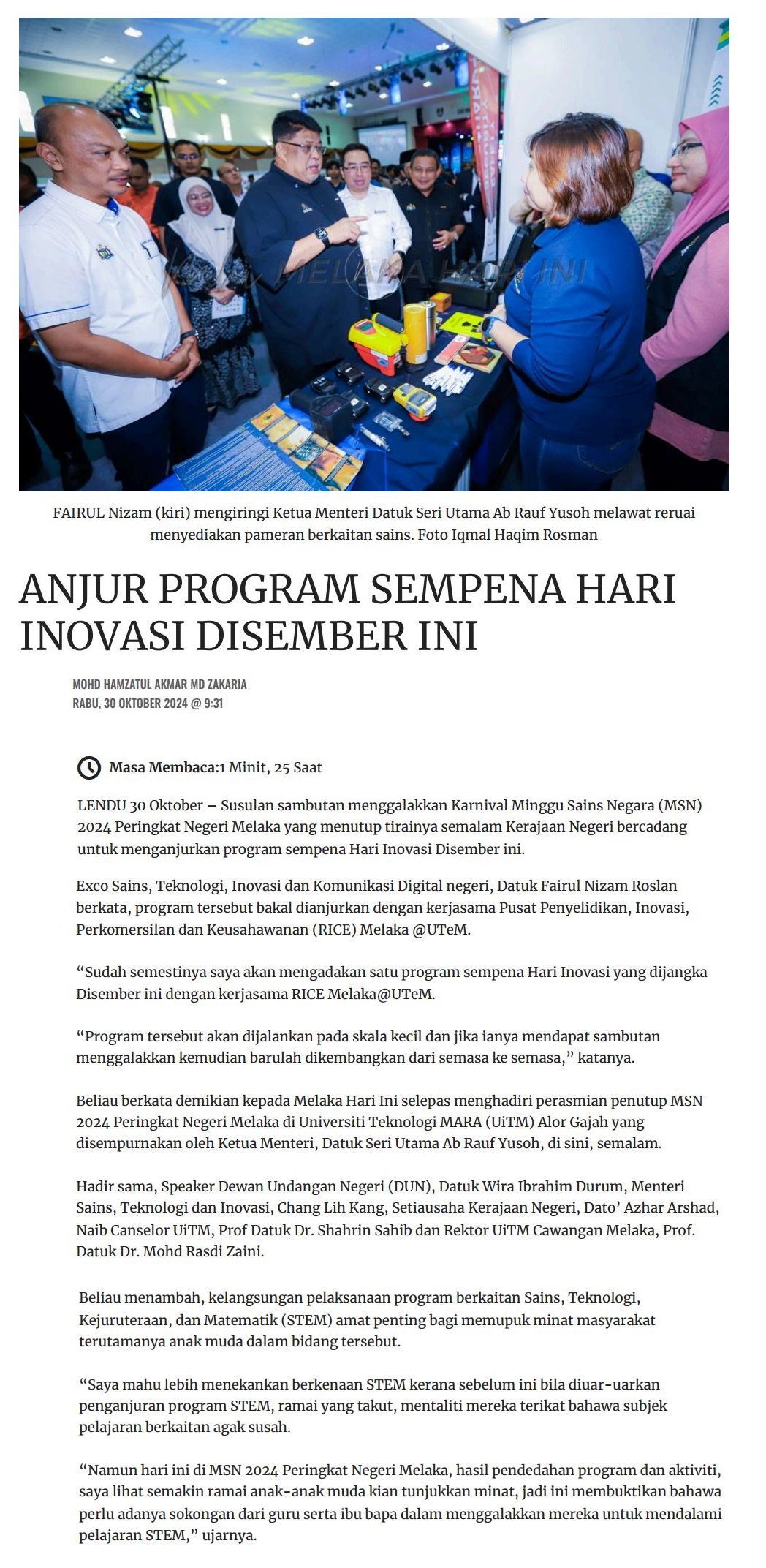 ANJUR PROGRAM SEMPENA HARI INOVASI DISEMBER INI