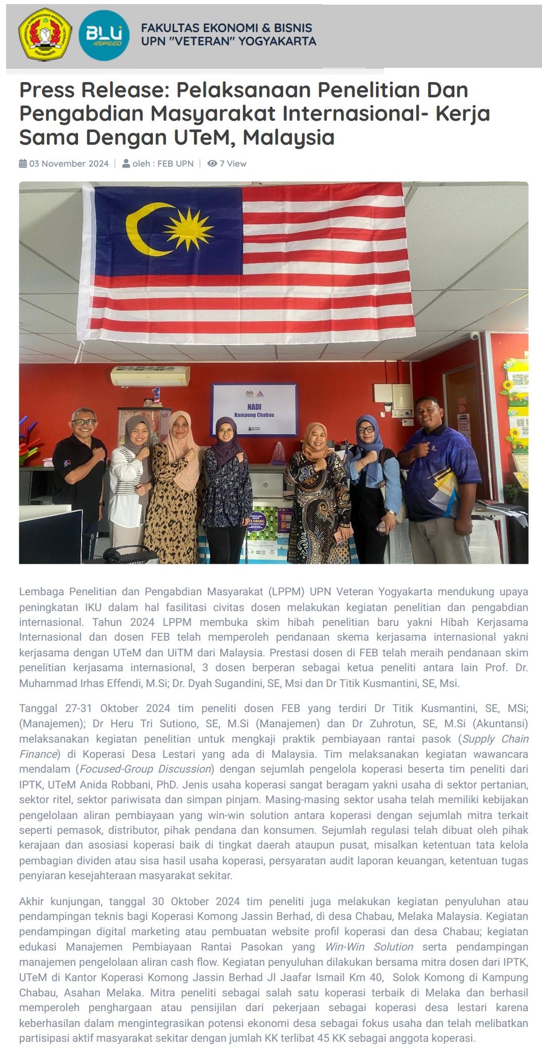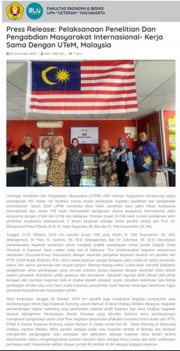 Pelaksanaan Penelitian dan Pengabdian Masyarakat Internasional- Kerja Sama dengan UTeM, Malaysia