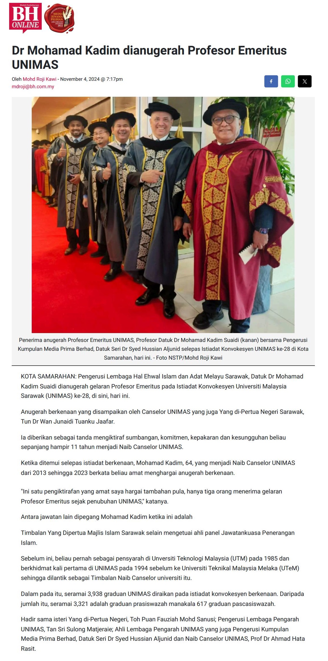 Dr Mohamad Kadim dianugerah Profesor Emeritus UNIMAS