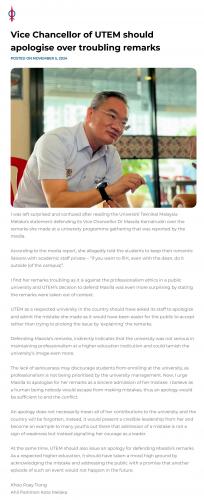 Vice Chancellor of UTEM should apologise over troubling remarks