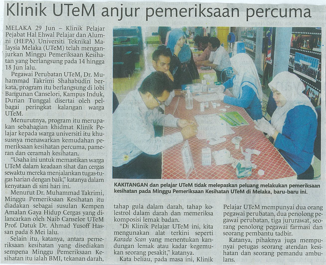Klinik UTeM Anjur Pemeriksaan Percuma