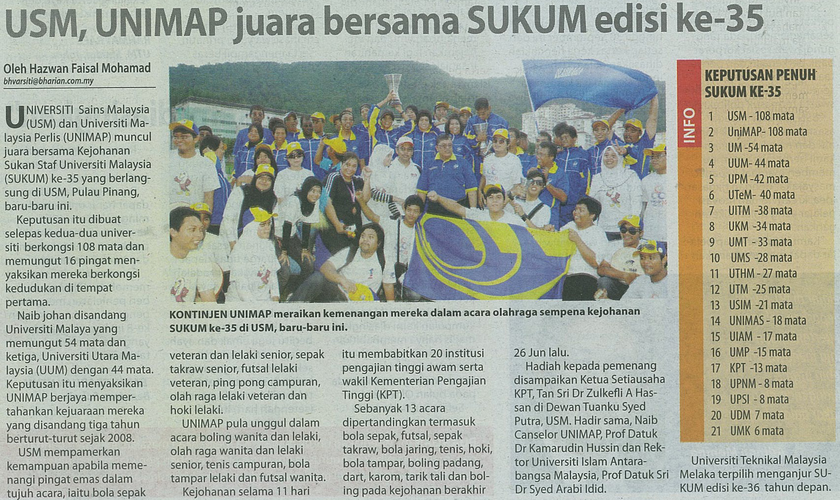 USM,UNIMAP Juara Bersama SUKUM Edisi Ke-35