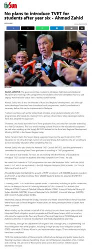 701 No plans to introduce TVET for students after year six - Ahmad Zahid