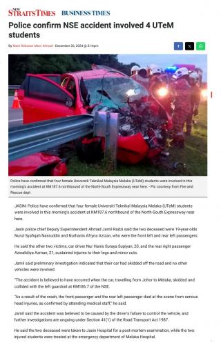 716 Police confirm NSE accident involved 4 UTeM students