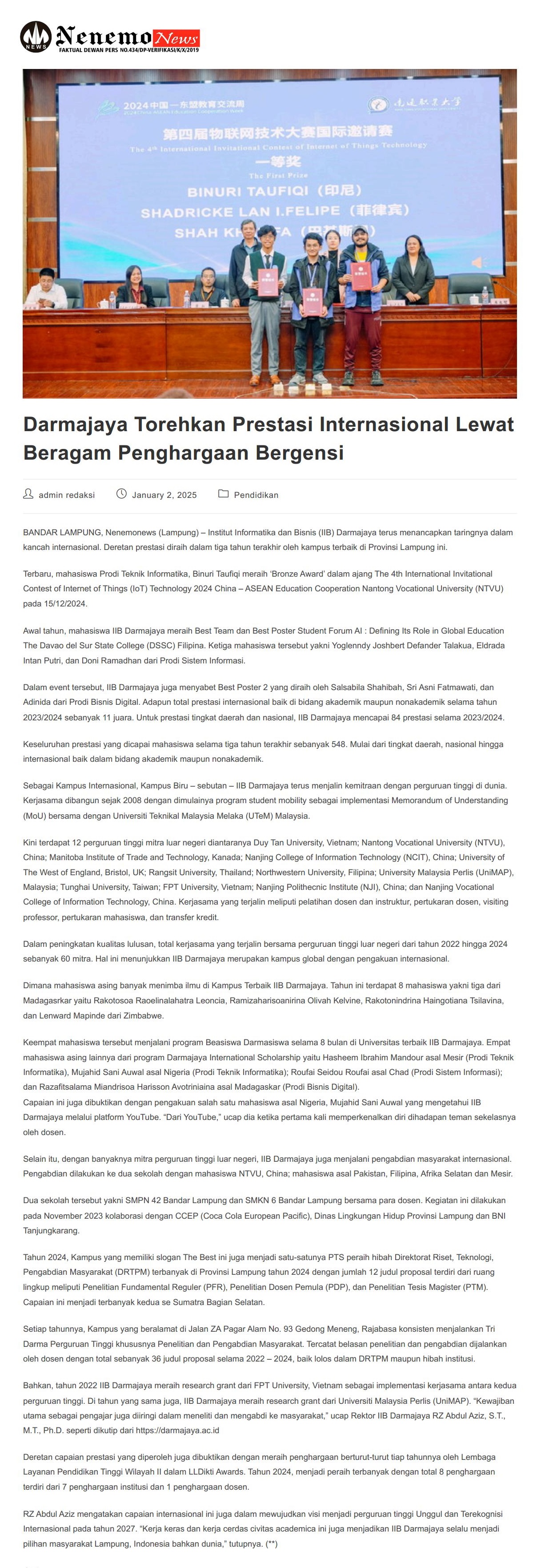 3. Darmajaya Torehkan Prestasi Internasional Lewat Beragam Penghargaan Bergensi