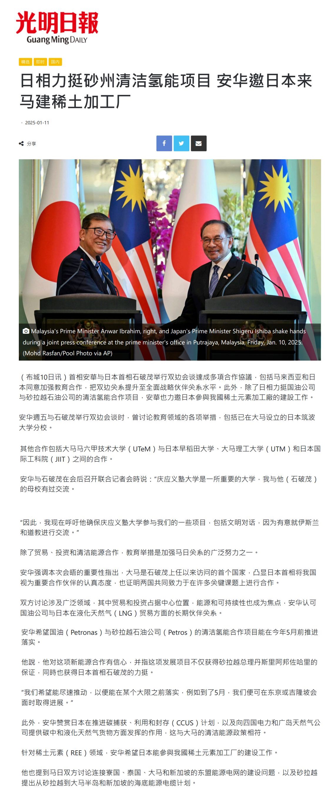 23 日相力挺砂州清洁氢能项目 安华邀日本来马建稀土加工厂