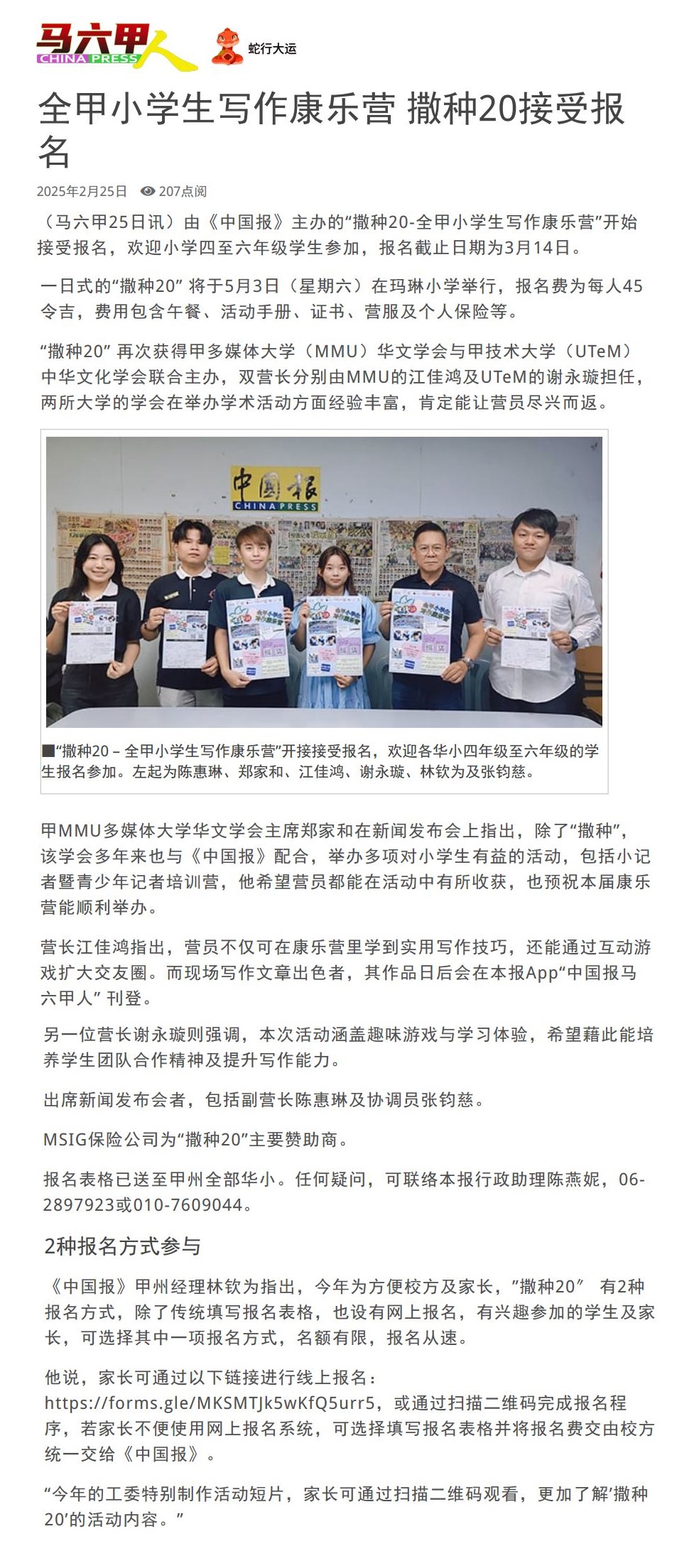 76 全甲小学生写作康乐营 撒种20接受报名