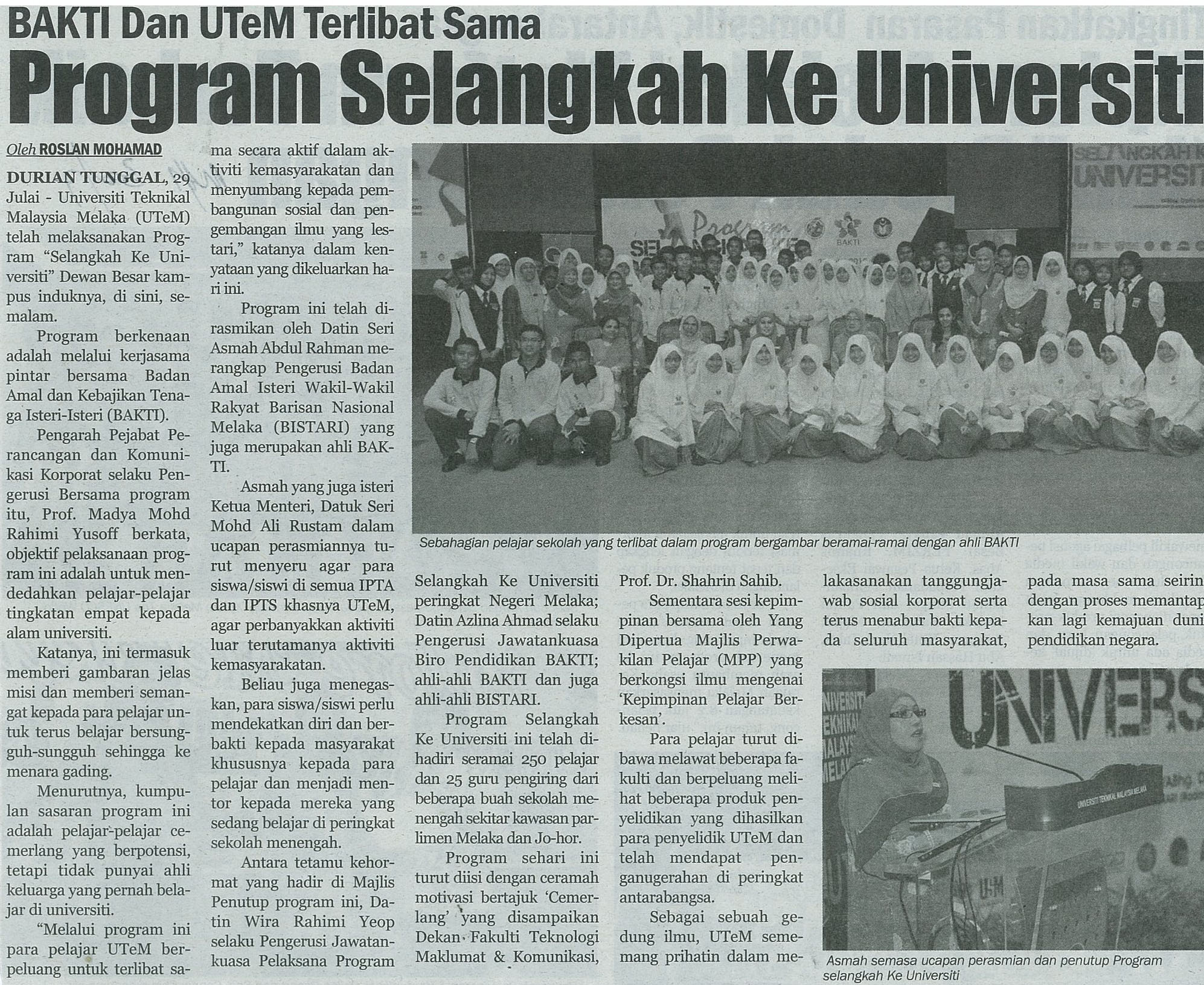 BAKTI Dan UTeM Terlibat Sama Program Selangkah Ke Universiti