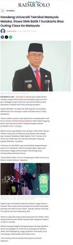 166 Gandeng Universiti Teknikal Malaysia Melaka, Siswa SMA Batik 1 Surakarta Bisa Outing Class Ke Malaysia - Radar Solo