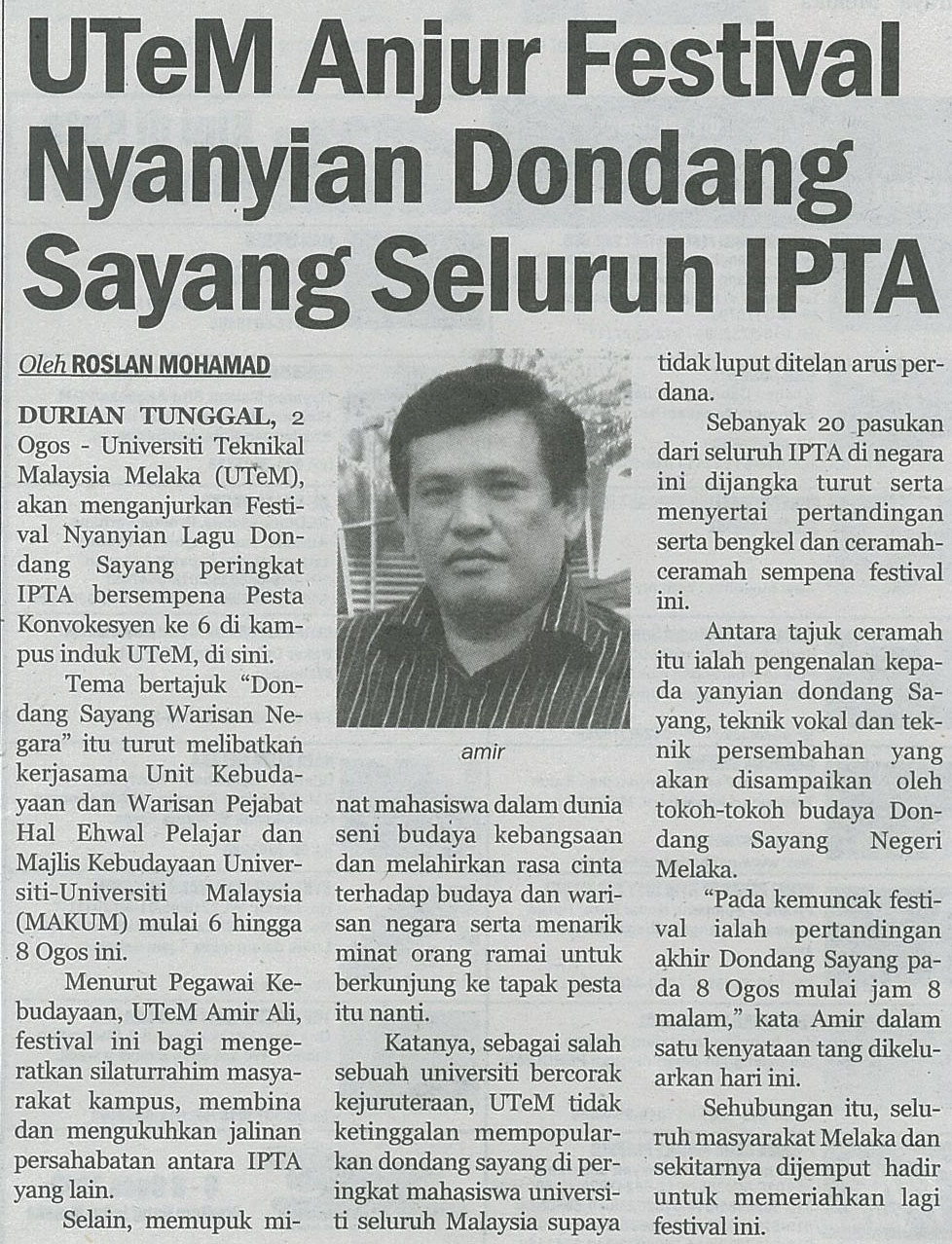 UTeM Anjur Festival Nyanian Dondang Sayang Seluruh IPTA