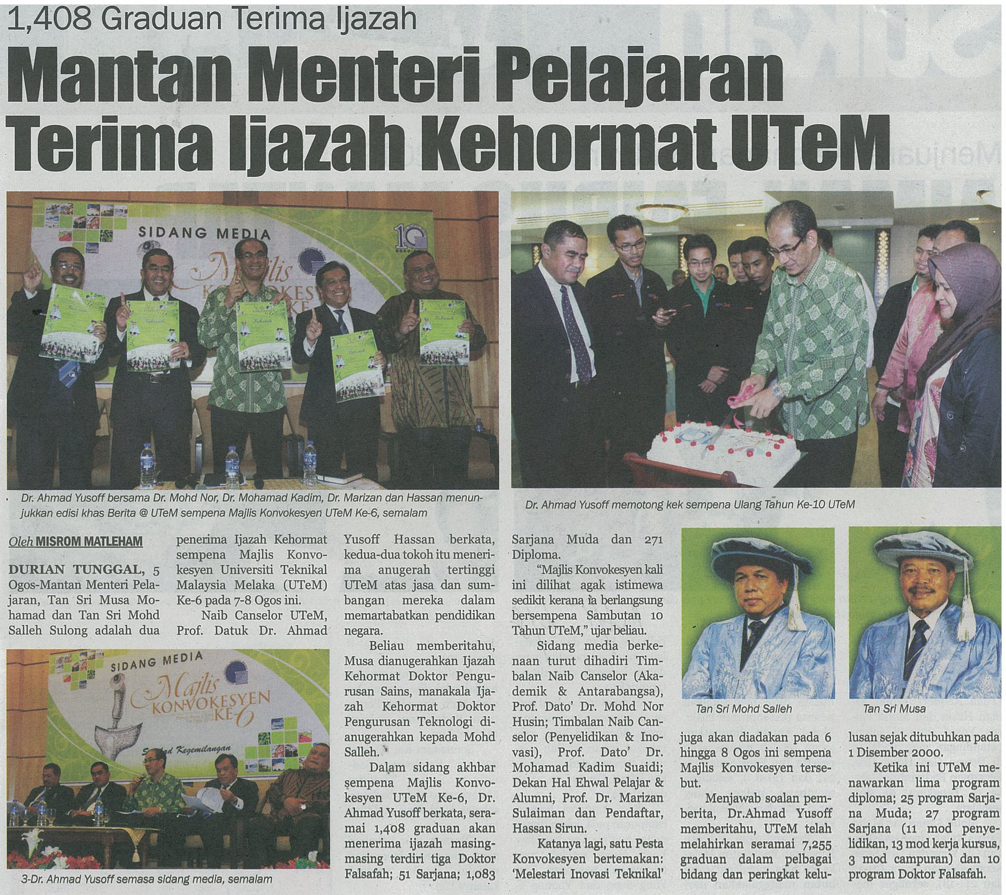 Mantan Menteri Pelajaran Terima Ijazah Kehormat UTeM