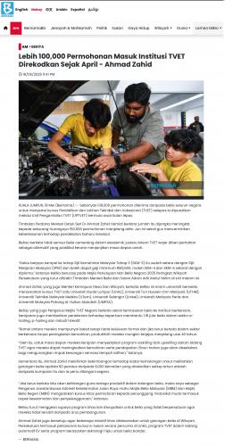 191 Lebih 100,000 Permohonan Masuk Institusi TVET Direkodkan Sejak April BERNAMA